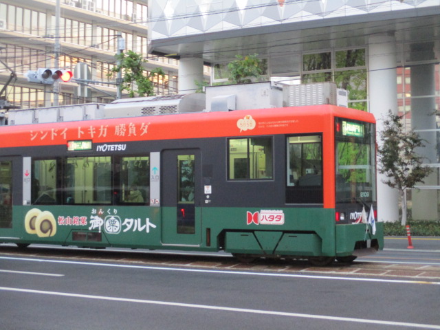 松山市では、JRの松山駅よりも松山市駅の方が繁華街になります。それで松山市駅からホテルに近いJR松山駅まで何度か使いました。地下鉄と違い車窓の風景が楽しめて位置関係がよくわかります。この路面電車は雰囲気があっていいですね。