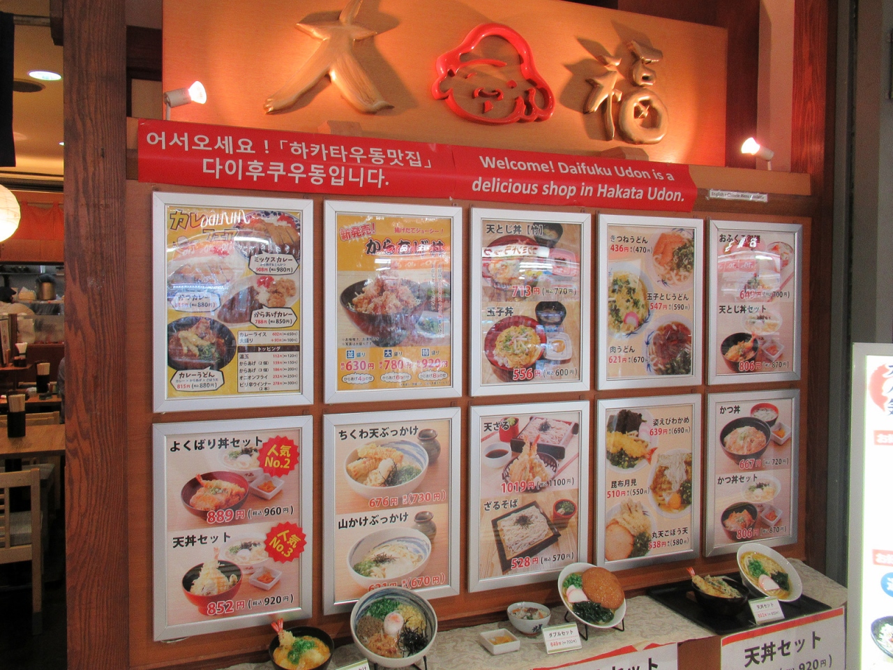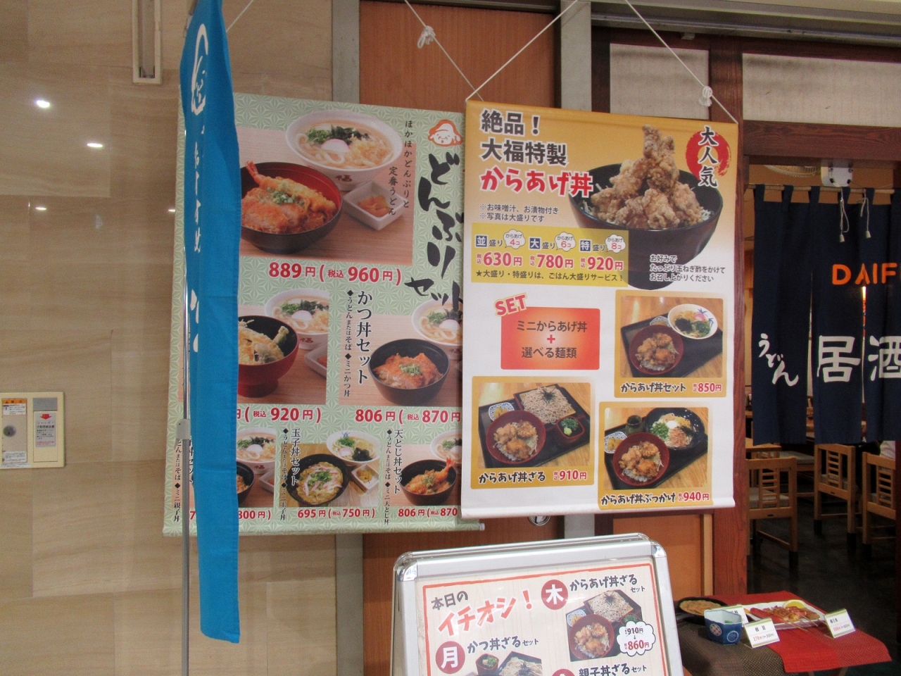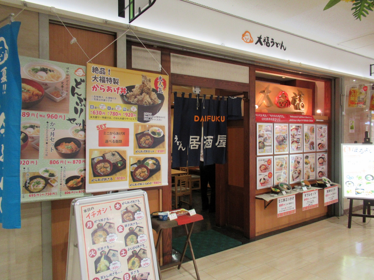博多駅博多口の大福うどん、えきちか店です。近くにある華やかな1番街店が観光客で混んでいるのに対し、昔ながらの地下街といった雰囲気にあるこちらのお店は、地元客中心といった感じでオジサンには居心地が良いです。博多駅近くのホテルに宿泊していたので、とても便利に利用できました。980円のほろよいセットは飲み物2杯とつまみが2品撰べて980円、〆は博多ならではのごぼう天うどん500円、博多を満喫できて満足です。