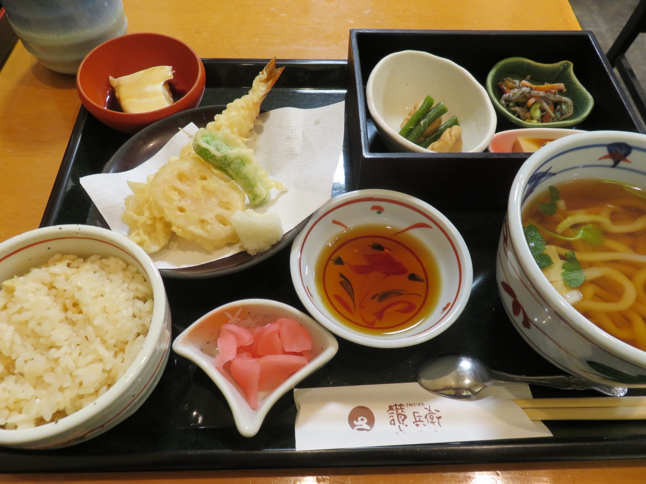 今回は和定食で天ぷらと炊き込みご飯はアサリ、ミニうどんで美味しくいただきました。
