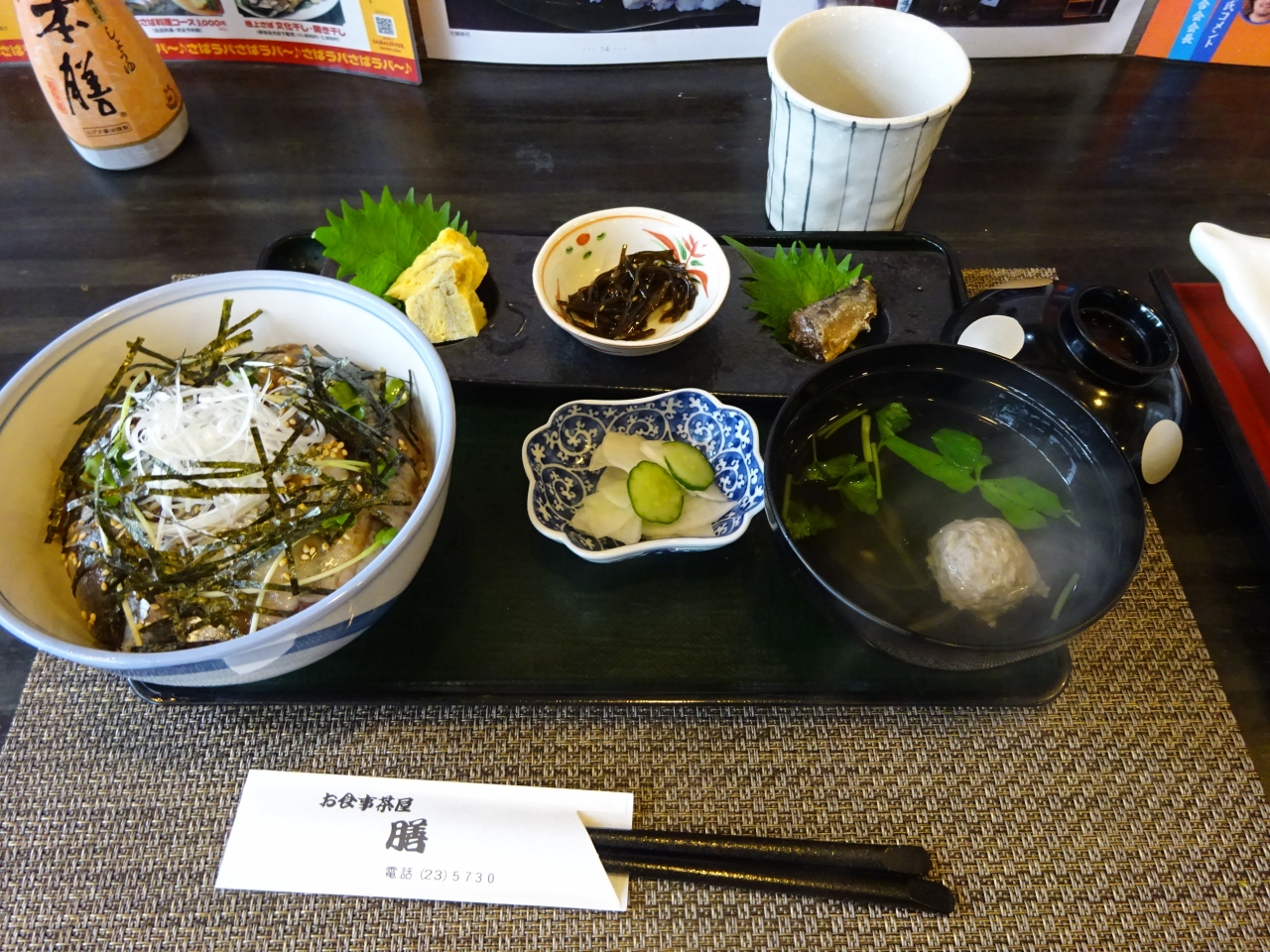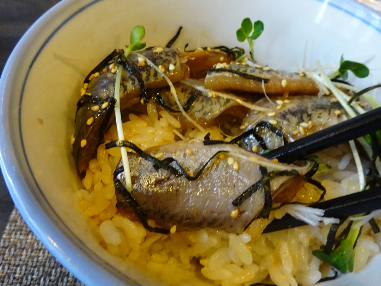 ということで「入梅いわしおまかせ御膳」を注文。いわしの漬け丼、刺身、煮つけ、天ぷら、とにかくいわしづくし。特に「漬け丼」は、一口食べたら止まらないおいしさでした。