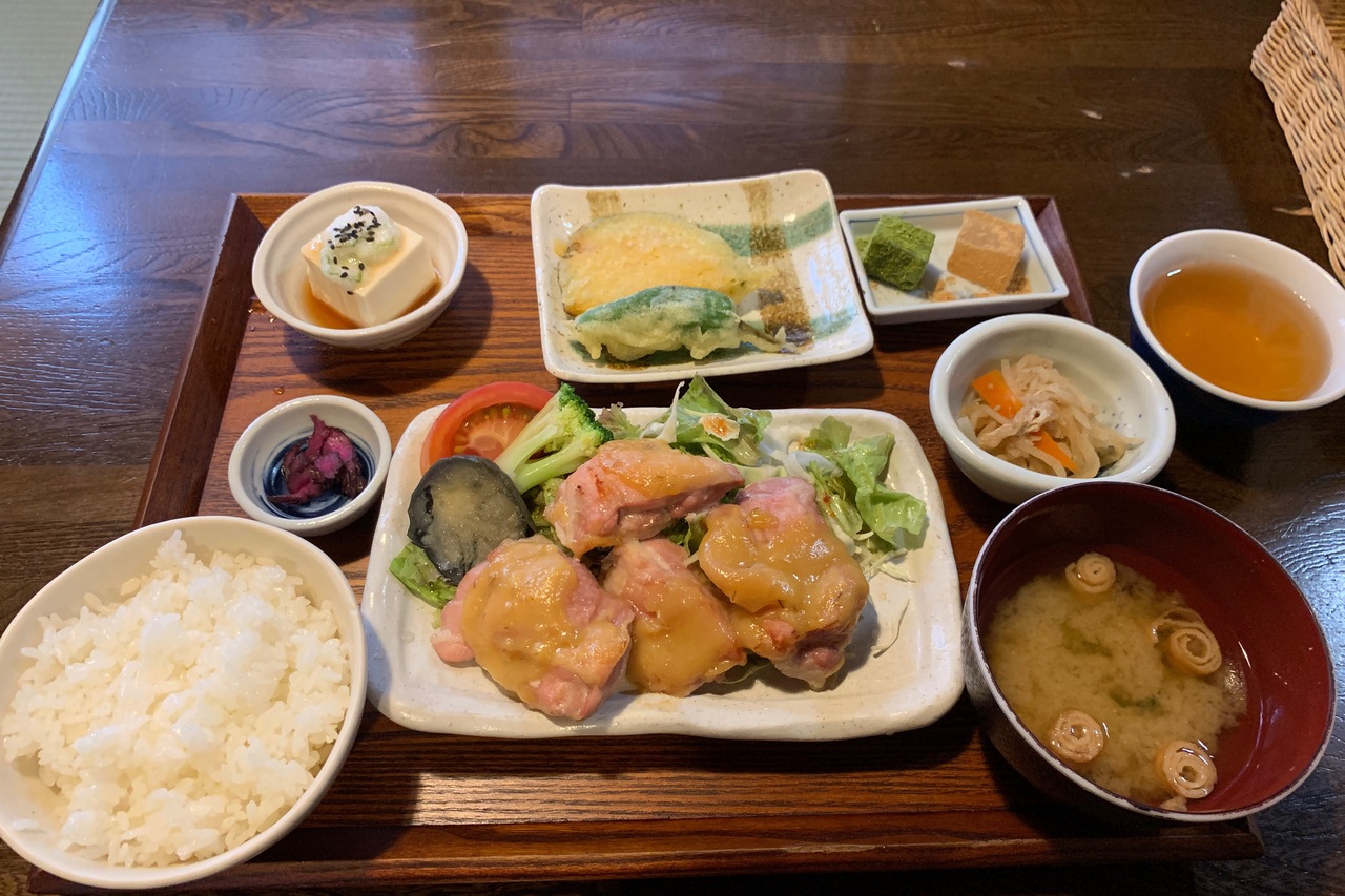 鶏肉は柔らかくて甘いお味噌が絡みご飯が進みます。野菜の天ぷらもサクッとして美味しかったです。