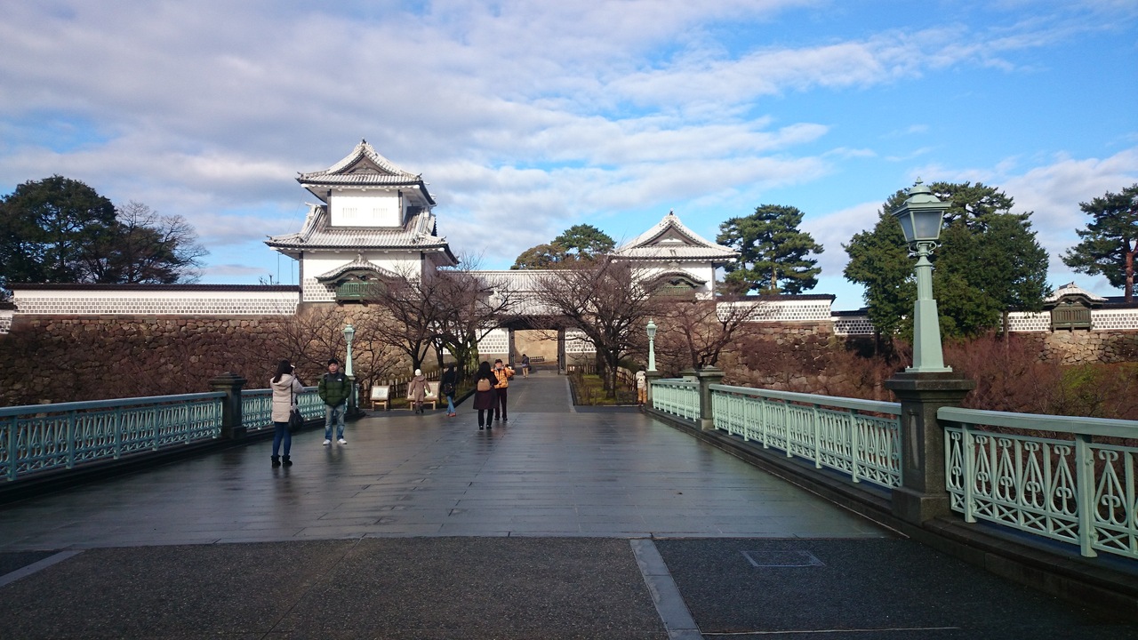 この橋から金沢城をとる観光客の方がたくさんいるので、時間によっては混雑します。