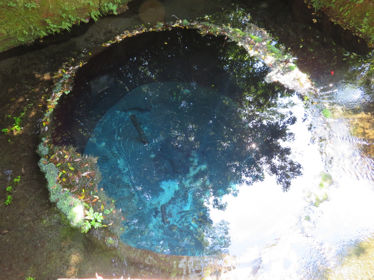 美しい澄んだ青色の水と、こちらも底から湧き上がる清水を確認できます。