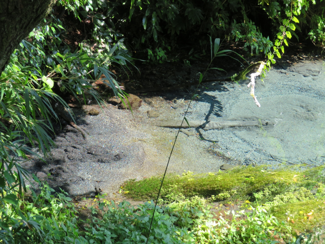 第2展望台では、かつて紡績工場が湧水を引いていた井戸のような場所を見ます。