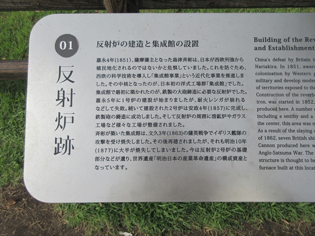 仙巌園の中にある施設の一つで,仙巌園の案内図の01番がこれになります.残念ながら石組みの土台しか残っていないので,説明文がなければ何の施設だったのか全く判らないと思います.そのせいか,訪れる人は多いですが,皆さん足早に去って行きました.