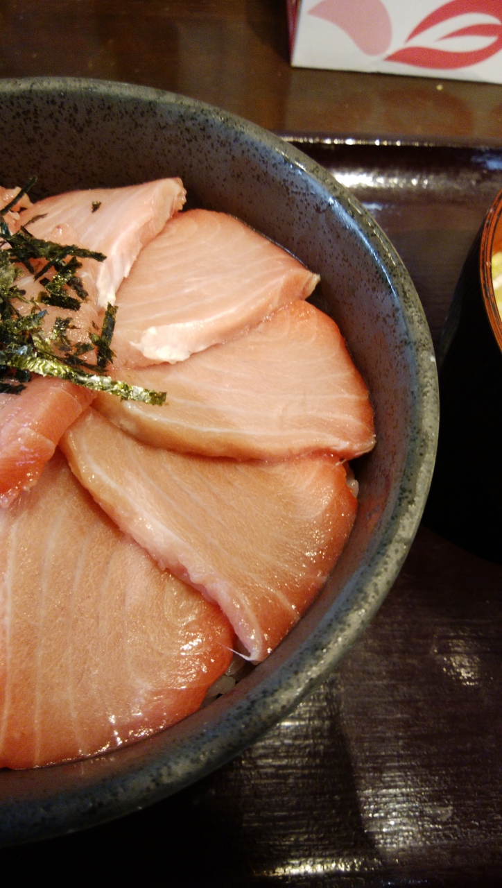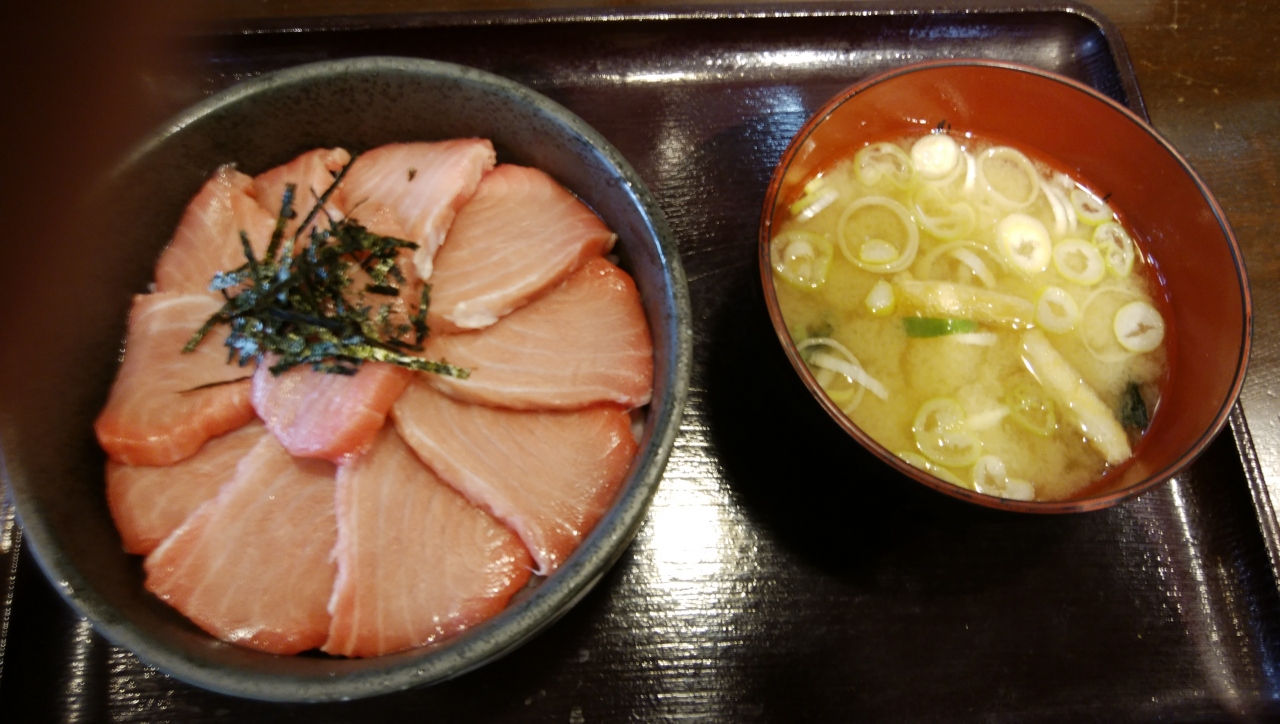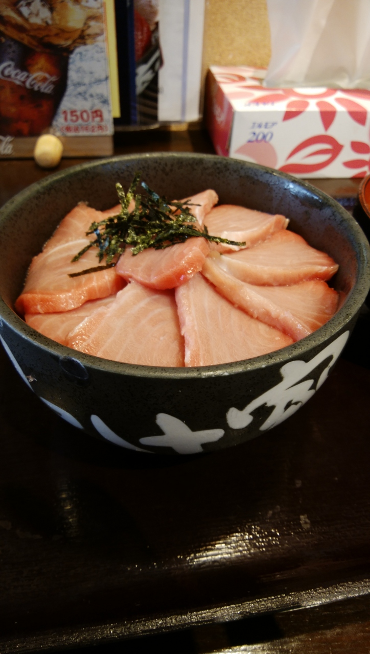 数量限定の本鮪頭肉丼(ずにくどん)をいただきました。丼は小ぶりですがご飯大盛りサービスらしいです。頭肉、サシの入った霜降り肉で舌で脂が溶けるのが分かります。小さなお店で回転の速いどんぶり屋、ですが質と値段を比せばコスパは良いと思います。