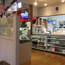 洋菓子の販売は勿論、カフェも併設され、イートインも可能。