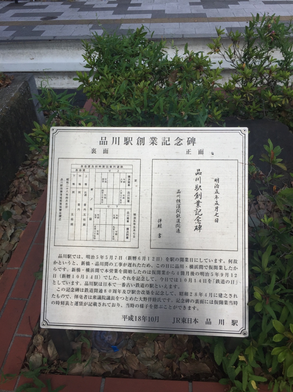 当初は新橋から横浜の予定でしたが品川から横浜までの区間が先に営業を開始したのでここに記念碑があるんですね。