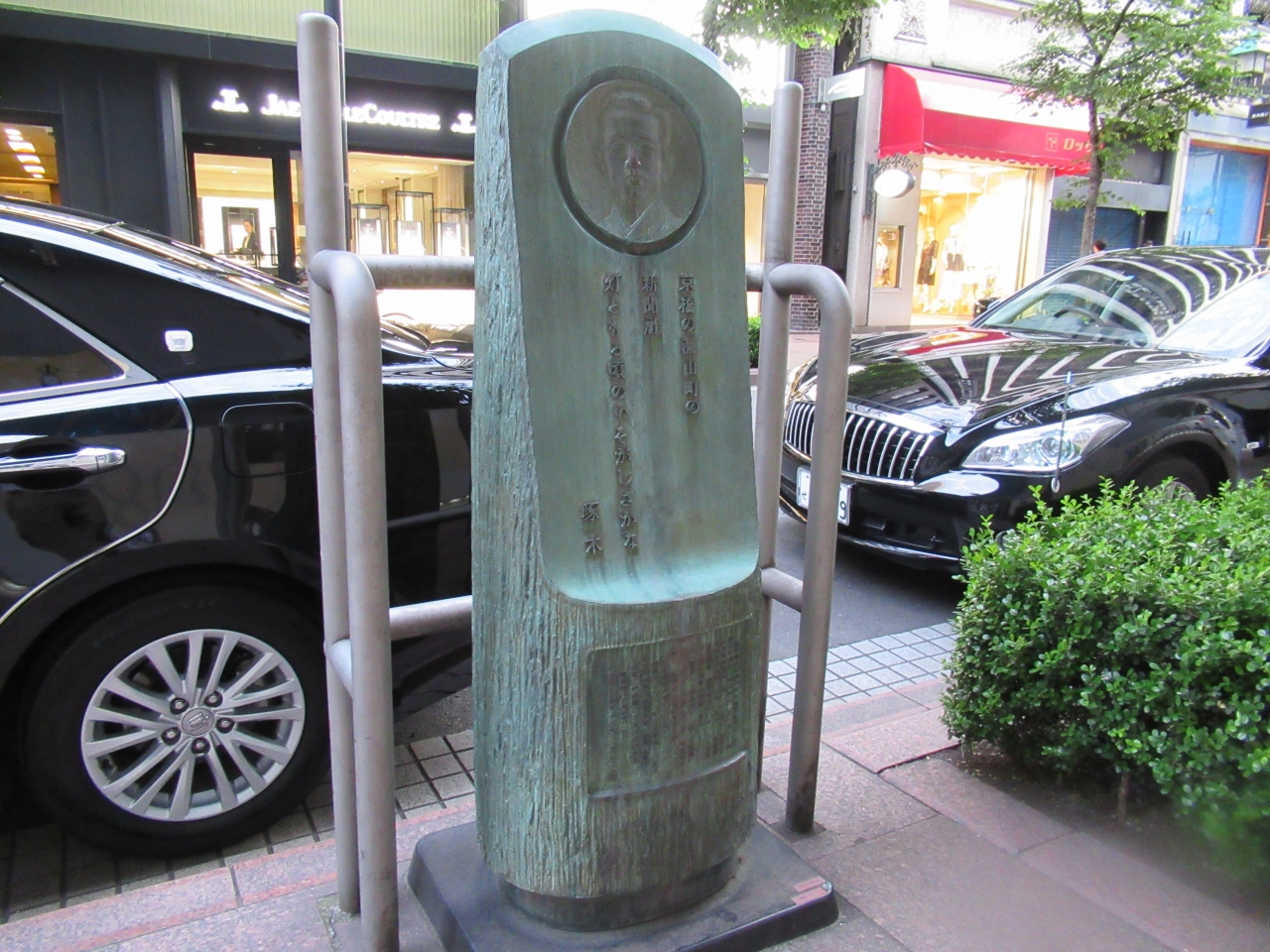 石川啄木歌碑は日本を代表する高級ブランドショップがひしめく