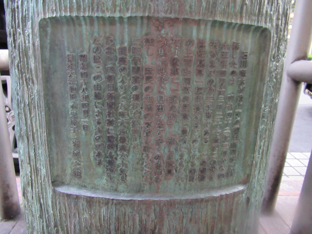 青銅色の美しい歌碑ですが、付近の景色に不思議とマッチしているという感じです。