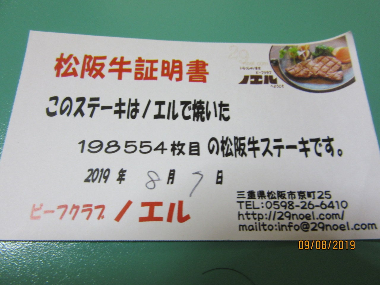 カードが利用出来ました。平日でも続々と来客して満席状態だったので予約した方が良いです。万円以上払って美味しい松阪牛は当たり前、4,500円でこの満足感は素晴らしい。また日付入りの【松阪牛証明書】がもらえます。私は8月7日で198,554枚目の【松阪牛ステーキ】でした。