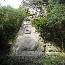 石段の上では巨大な不動明王と大日如来が迎えてくれます。不動明王はちょっとユーモラス、大日如来は素朴なお顔です。
