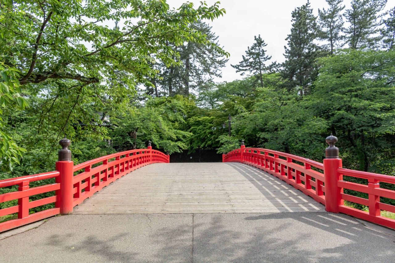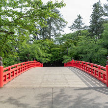 二の丸から本丸に到る途中にある赤い欄干が鮮やかな橋です。以前はここからの天守が弘前城一番のスポットだったのですが、今は天守が移動しているのでその姿をみることができません。代わりに天守石垣の補修工事の様子を見ることができます。