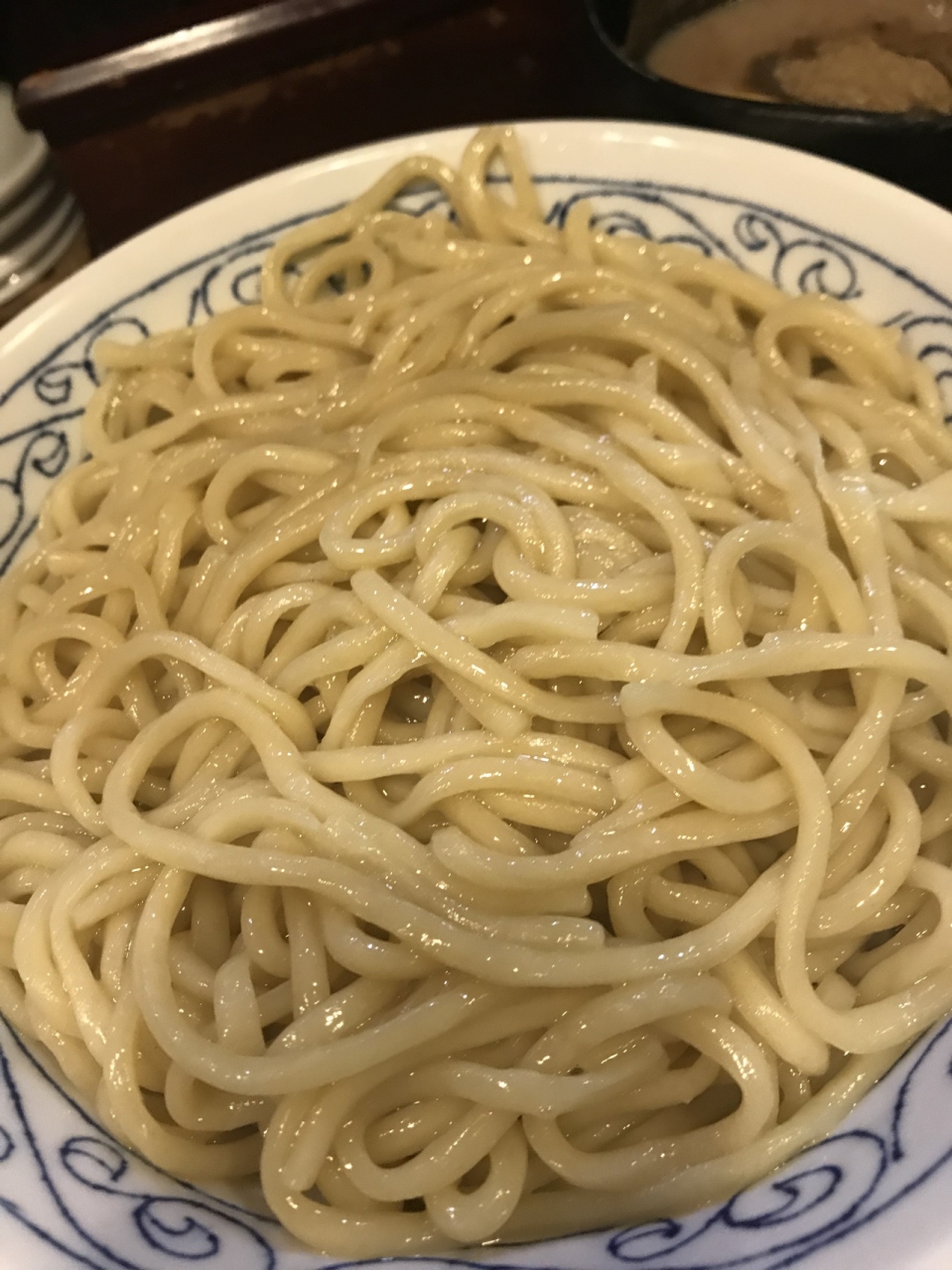 カウンター席のみの12席。ラーメン、つけ麺、油そばがありますが、今回はつけ麺大盛りを注文、100円アップの980円。一見よくある魚介系スープかとがっかりしましたが、食べてみると甘めで美味い!他とは違う。麺も太麺で美味しい!チャーシューもパサパサしておらず美味しく、味付けキクラゲも美味い。開店から並ぶのがよく分かりました。