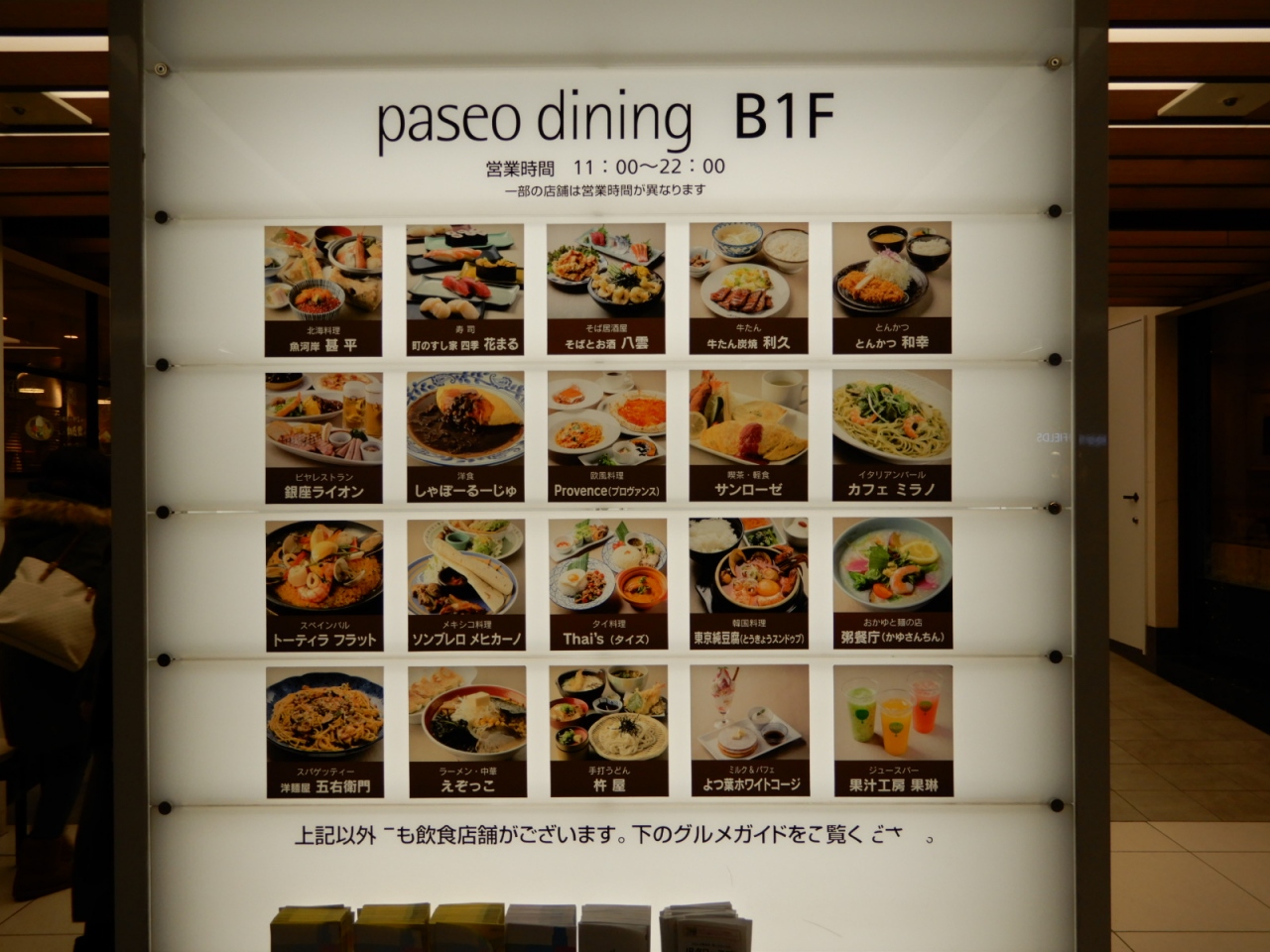 札幌駅の改札口を出ると、東も西もまっすぐつながっている商業施設。郵便局から書店、ファッション関係とお店が多いですが、特に飲食店は和、洋、中、エスニックとたくさんのお店が入っています。ただ、ステラプレイスと違い喫煙可のお店があるので要注意です。