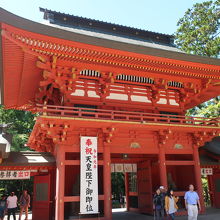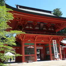 香取神宮の総門を潜って右手に行った先に香取神宮 楼門があります。元禄13年に幕府によって建てられた楼門は三間一戸、同葺入母屋造りです。均整の取れた美しい朱に塗られた楼門は周りの新緑、と青い空とのコントラストが絵になります。2層に掲げられた額は東郷平八郎の字だそうです。意外と筆を取っているんですね(上野の下谷神社にもありました)。