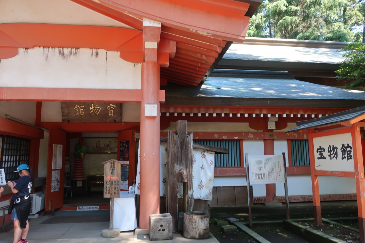 香取神宮の拝殿右手、神楽殿の裏手に香取神宮宝物館があります。宝物館の中には国宝の海獣葡萄鏡、重要文化財の古瀬戸の狛犬などが展示されていますが、私が見たかったのは戦艦香取の船首に掲げられていた御紋章。ケースにも入れられずデーンと置かれた菊の御紋章は大きく驚きました。間近に見られることは少ないので見応えがありました。