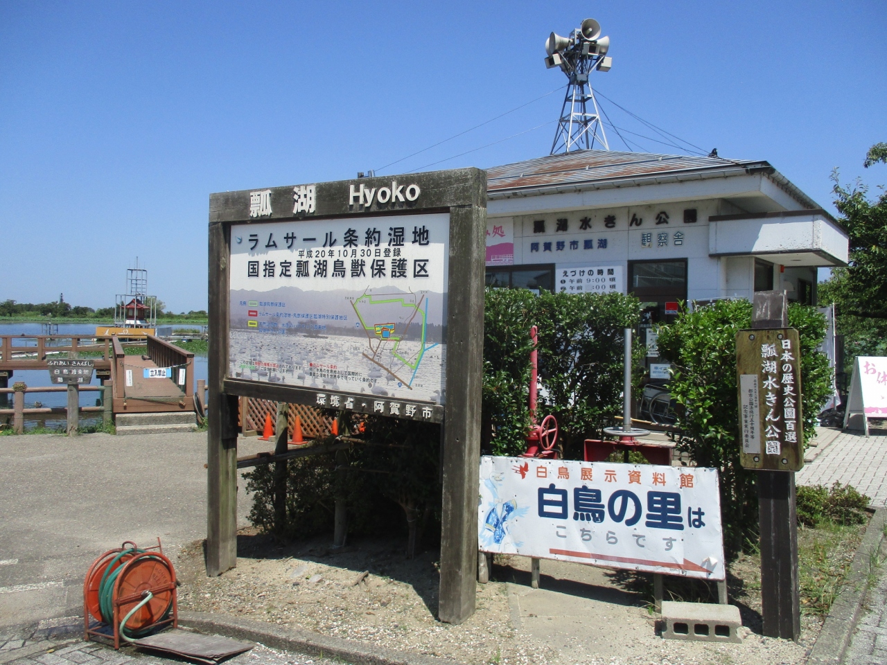 訪れたのは夏の暑い一日で、瓢湖では、数羽の白鳥と鴨が泳いでいました。