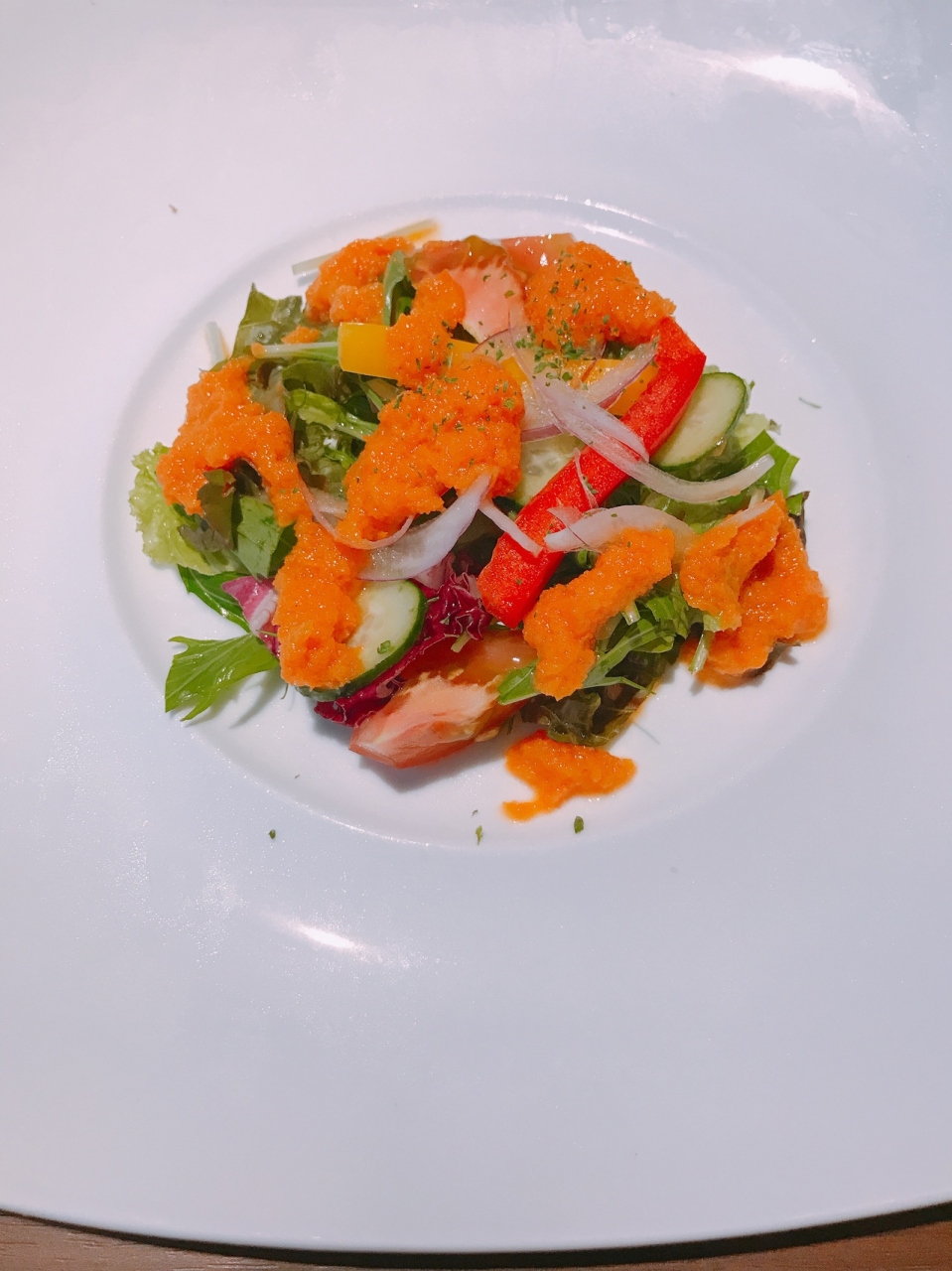 サラダのにんじんドレッシングは美味しく野菜に絡めてたべました。