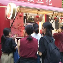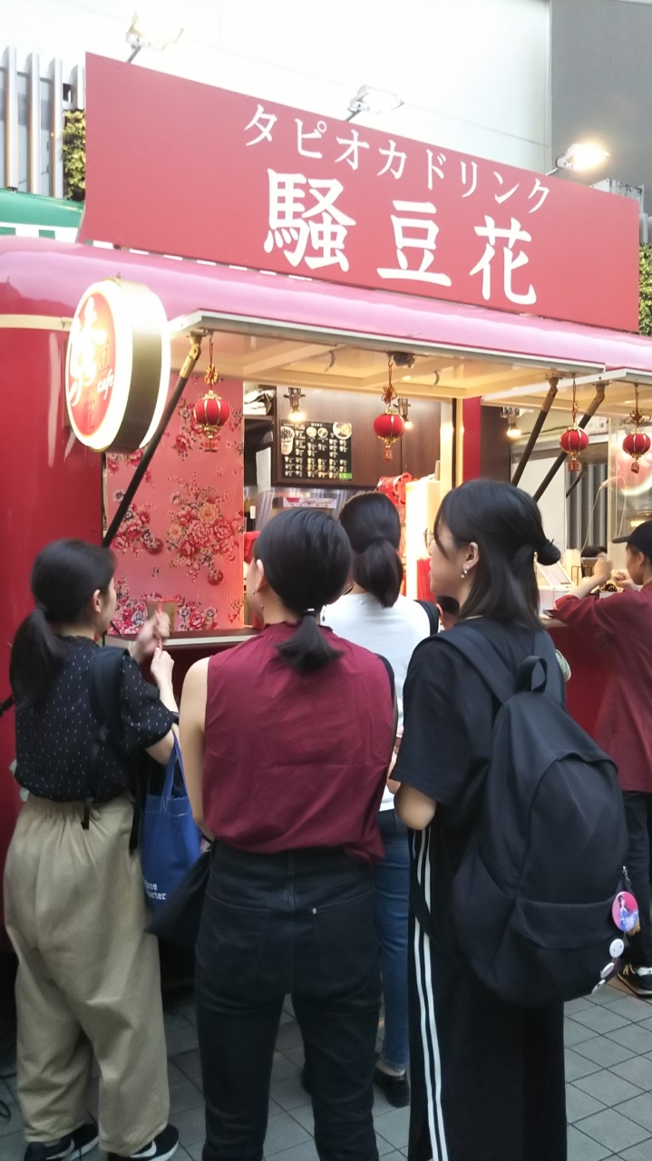 赤いワゴン車がミロードのモザイク通りに停まってます。申し訳無いけど、芋圓がまるで一旦凍らせたのを解凍したかのようなボソボソした食感がで、正直まずかったです。芋圓が食べたくて豆花注文したのに、800円以上出して残念な結果でした。土曜日の夕方行きましたが、列は10人ほどでした。ほぼそれくらいが終始並んでいるようです。
