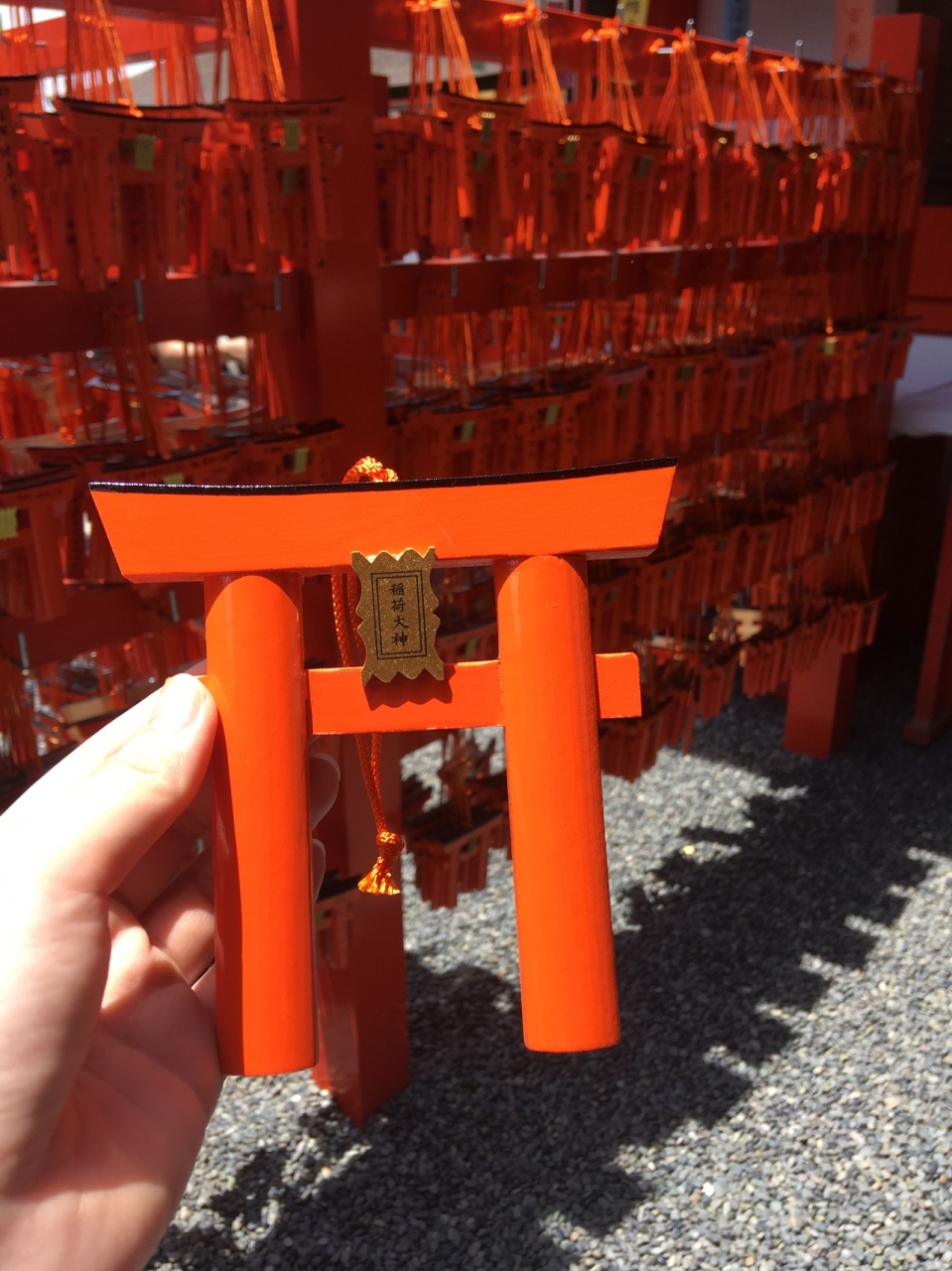 千本鳥居に向かう途中に鳥居の形の絵馬があり、珍しいので書いてみました。絵馬の書き方も独特なので、近くの説明を見た方が良いです。