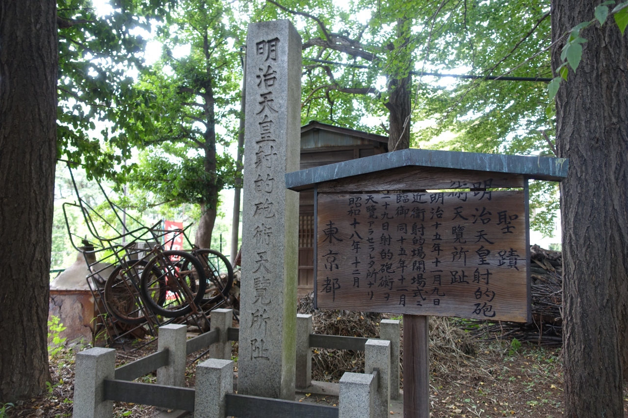 境内は高い木々に囲まれて神聖な雰囲気が漂います。明治天皇天覧の石碑もあり、社殿に菊花紋が付いていることからも皇室ゆかりであることが伺えました。ただ、鳥居や社殿は比較的新しく、文化財的な見所は少ないかなと思います。