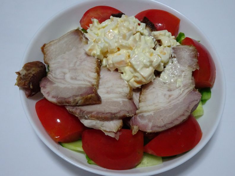 惣菜は揚げ物と焼き豚がありました。焼き豚はブロックとスライスされたものが売られていました。280円/100g・スライスしたものを買って、サラダに載せて食べてみましたが、脂身が半分ほどありました。