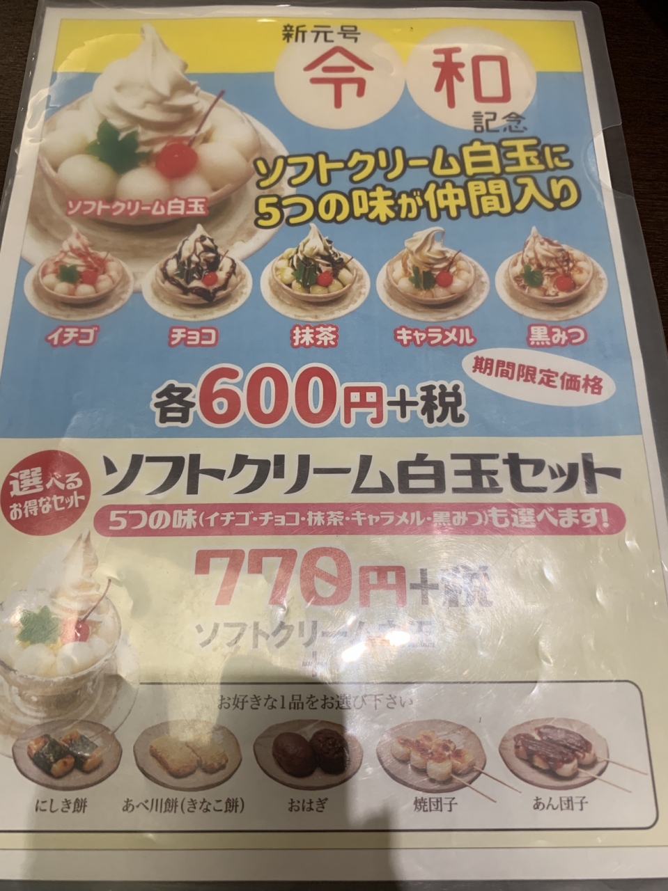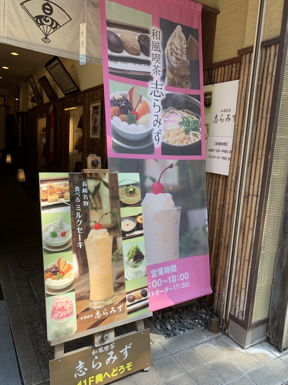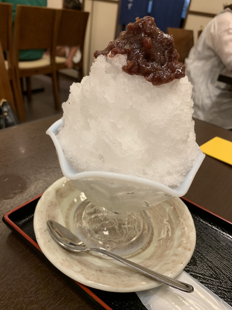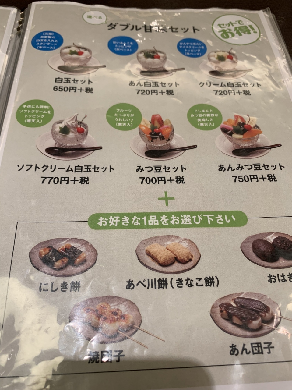 志らみずは白水堂の店奥にある喫茶店で、白水堂で有名な桃カステラやミルクセーキ、かき氷、安倍川餅など和風のメニューがあります。かき氷を食べに行きましたが狭い店内は満員で少し待ちました。価格は決して安くはないですが観光客だらけでした。
