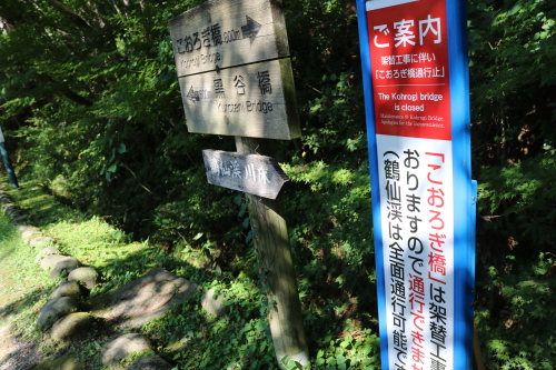 こおろぎ橋は、工事中とのことです。
