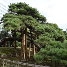 太い幹から低く張り出して下がった枝振りがとても立派です。