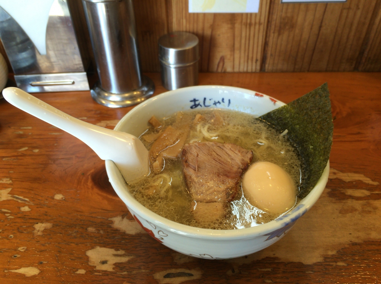 何度も来ていますが飽きずに食べられる阿闍梨のラーメン。塩ラーメンはあっさりしたスープにシナチク、ネギ、チャーシューが乗っており歯ごたえのある麺と一緒に美味しく食べられます。食券機で券を購入する形ですが支払いは現金のみ、また5,000円(10,000円だったかな)以上の高額紙幣は使えないので店員さんに申し出ると両替してくれます。