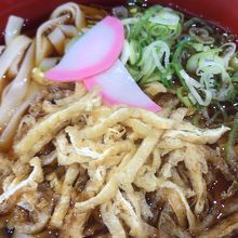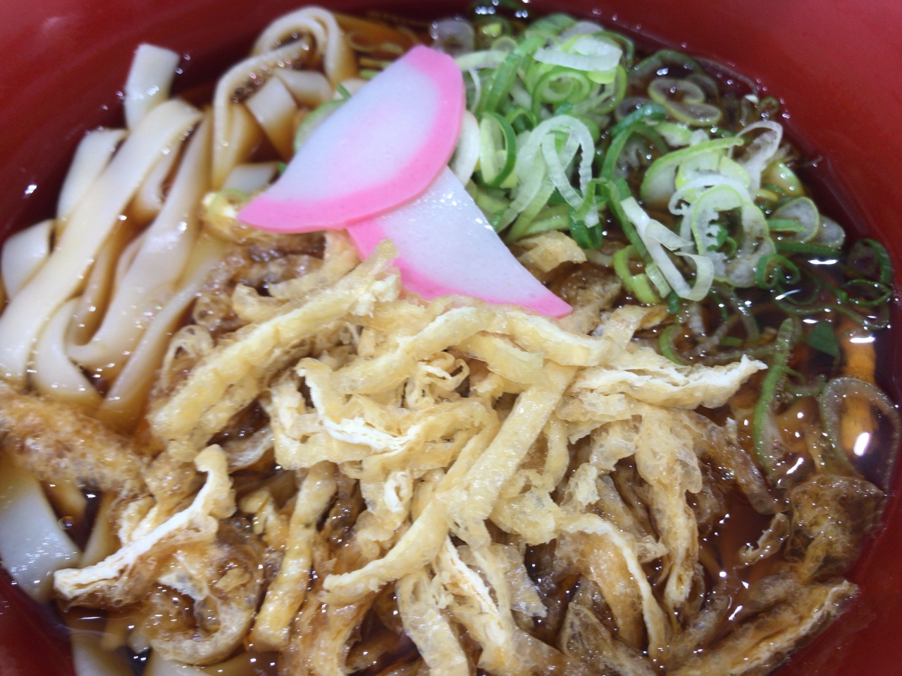 かまぼこ二枚、ネギもいい感じで色合いがいいきしめんだな