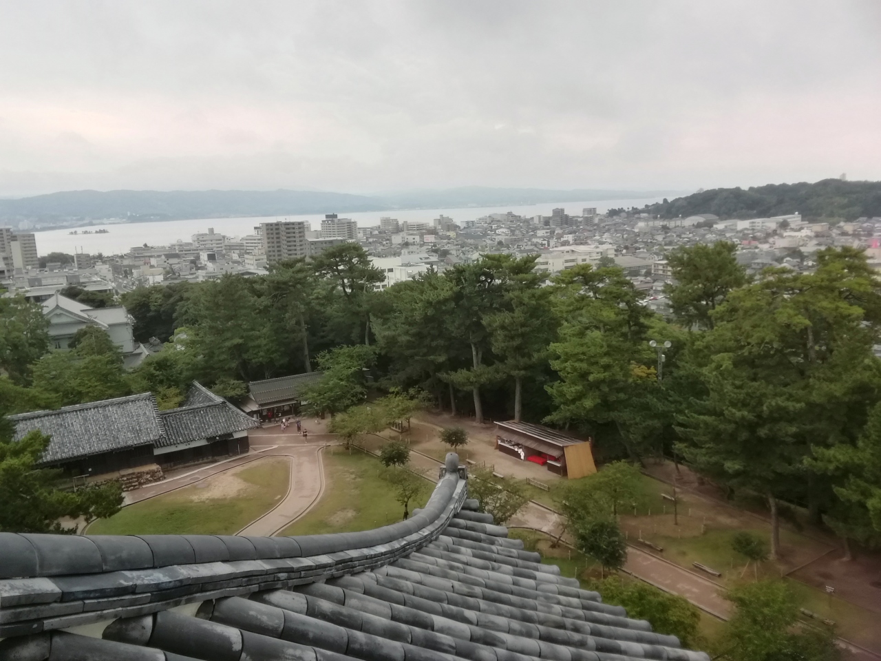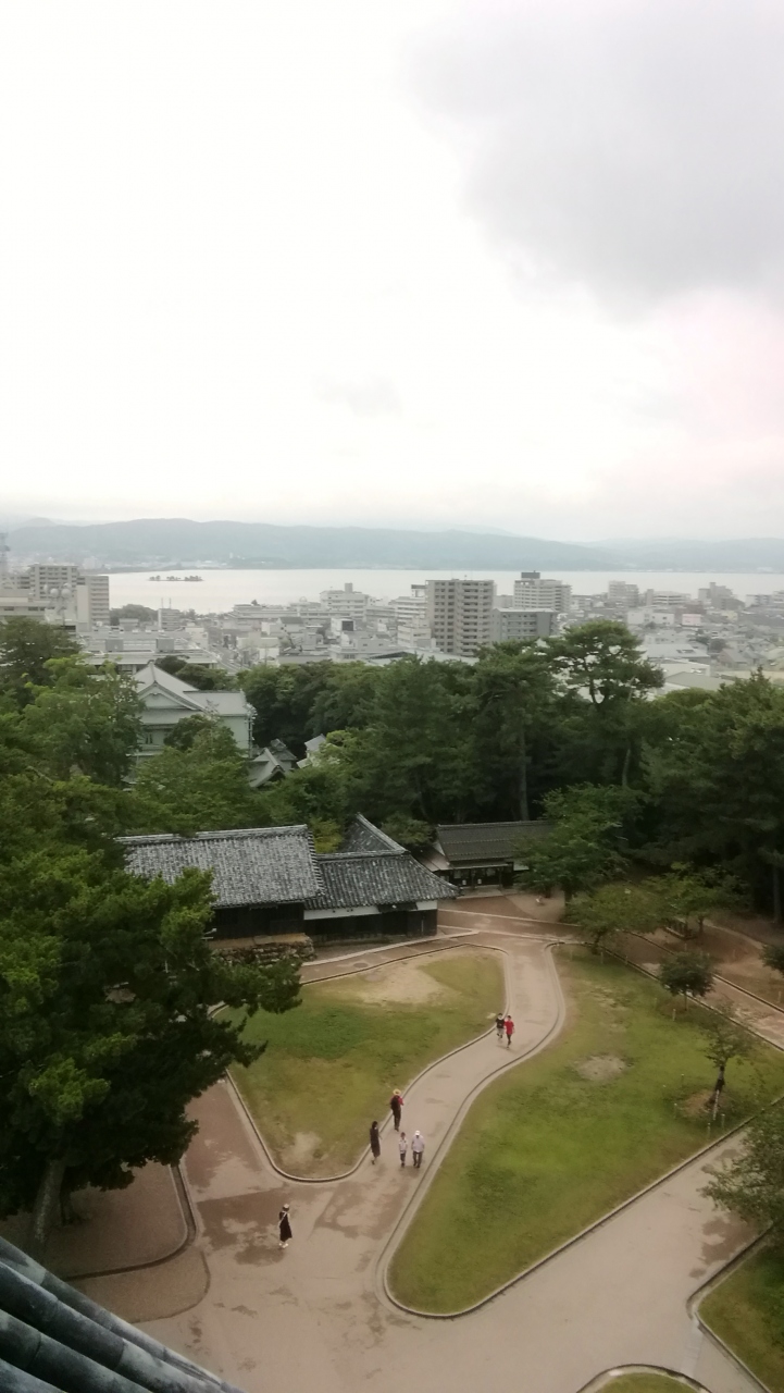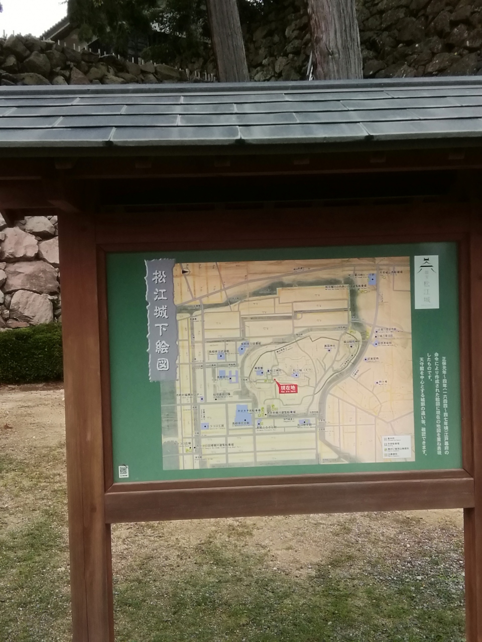 大手門をくぐり城内に入っていくと天守閣のある松江城にたどりつく。この天守は、入母屋破風の屋根が羽根を広げたように見えることから別名「千鳥城」とも呼ばれている。この松江城は全国に現存する 12 天守の一つで最上階の天守閣からは宍道湖や松江の街並みが360度一望できる。季節を通じて楽しめるお城の一つであろう。