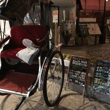 駅を降りて温泉へ向かう途中人力車が目立ちます。