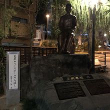 伊予鉄道で道後温泉駅まで来るとすぐ目の前の広場のからくり時計の隣にこの像はあります。野球道具をもった素敵な像です。