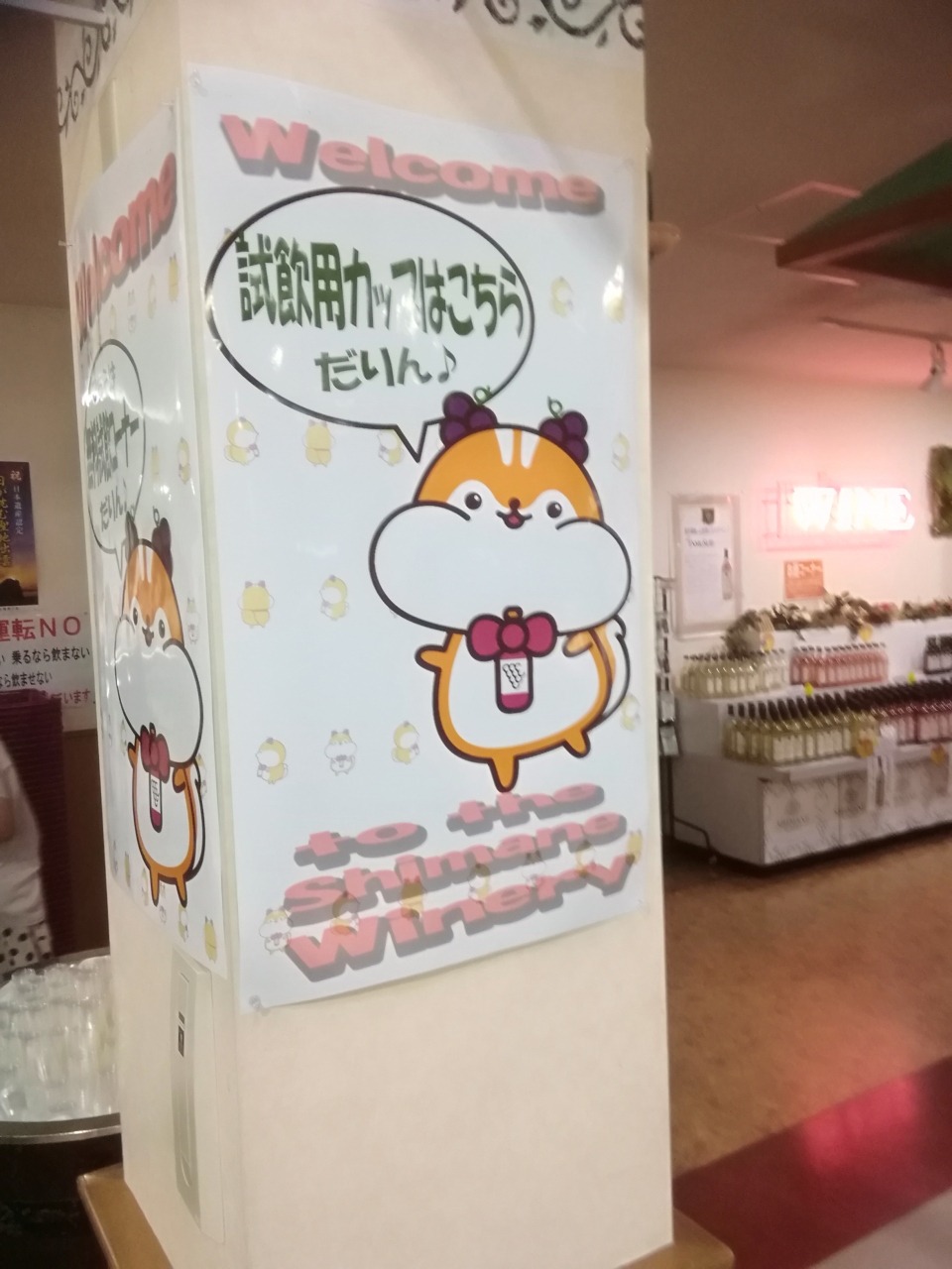 出雲大社の参拝の後にランチをとるために島根ワイナリーを訪れました。広大な敷地内にワイン製造が無料見学できる工場や、試飲・即売施設と、バーベキューハウスがあります。今回は、バーベキューハウス シャトー弥山でランチをとってからワイン試飲ができる試飲即売館バッカスに行ってみました。ランチは島根和牛の定食を美味しくいただきました。食後のワイン試飲は自分でカップにつげるようになって飲みやすいと思いました。ここぞとばかりに全種類を試飲させてもらいました。