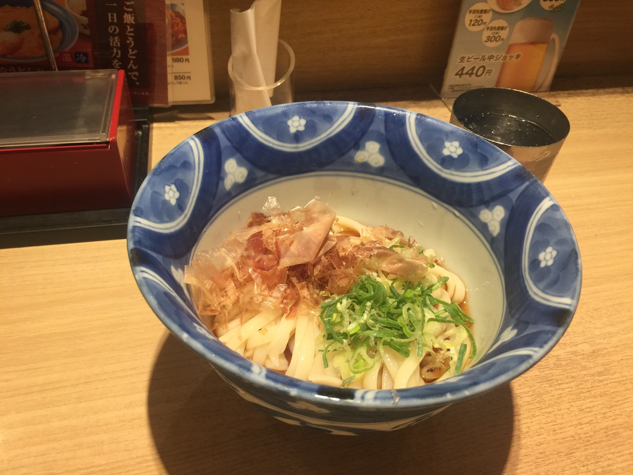 食べたのは朝メニューの冷やしぶっかけうどん400円!喉越しが良くて美味しいですね!