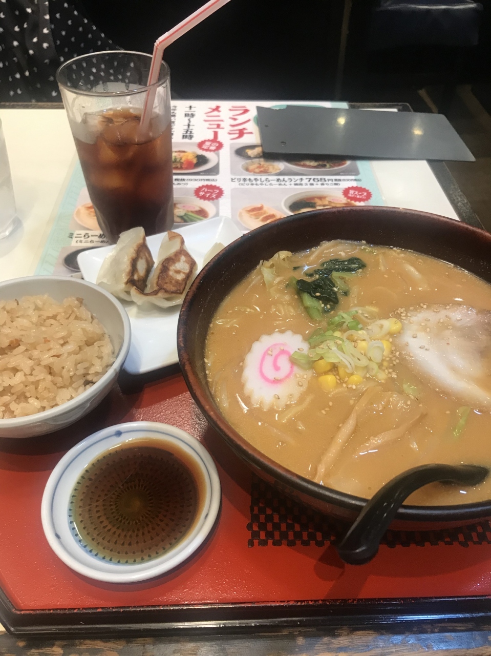 西武池袋線大泉学園駅から住宅街にあるLIVINの5階レストランフロアーにある糸ぐるまです。ラーメンやあんみつなどの甘味がいただけるレストランです。ランチメニューの味噌ラーメンセットには、93円でドリンクが付けられます。