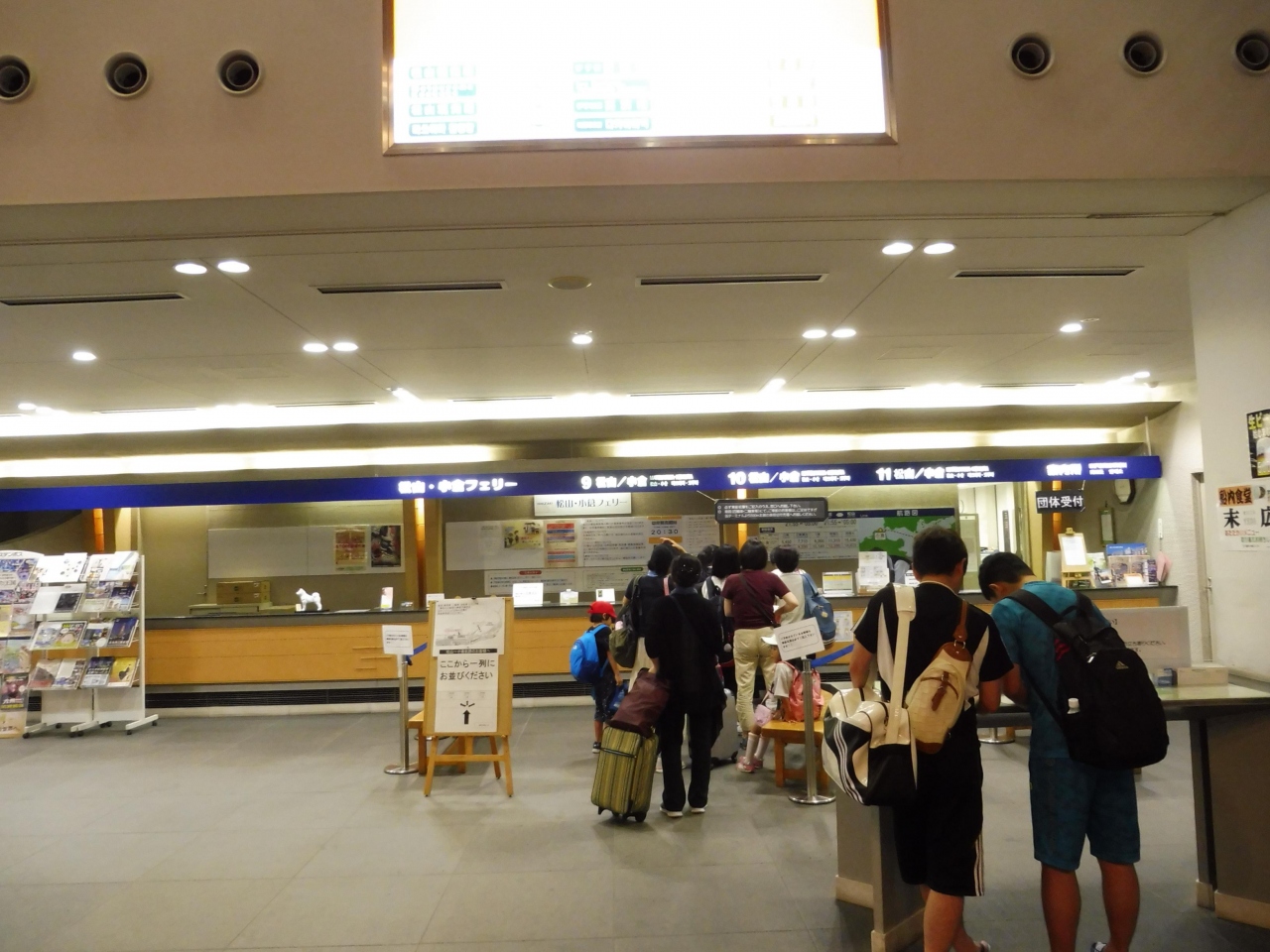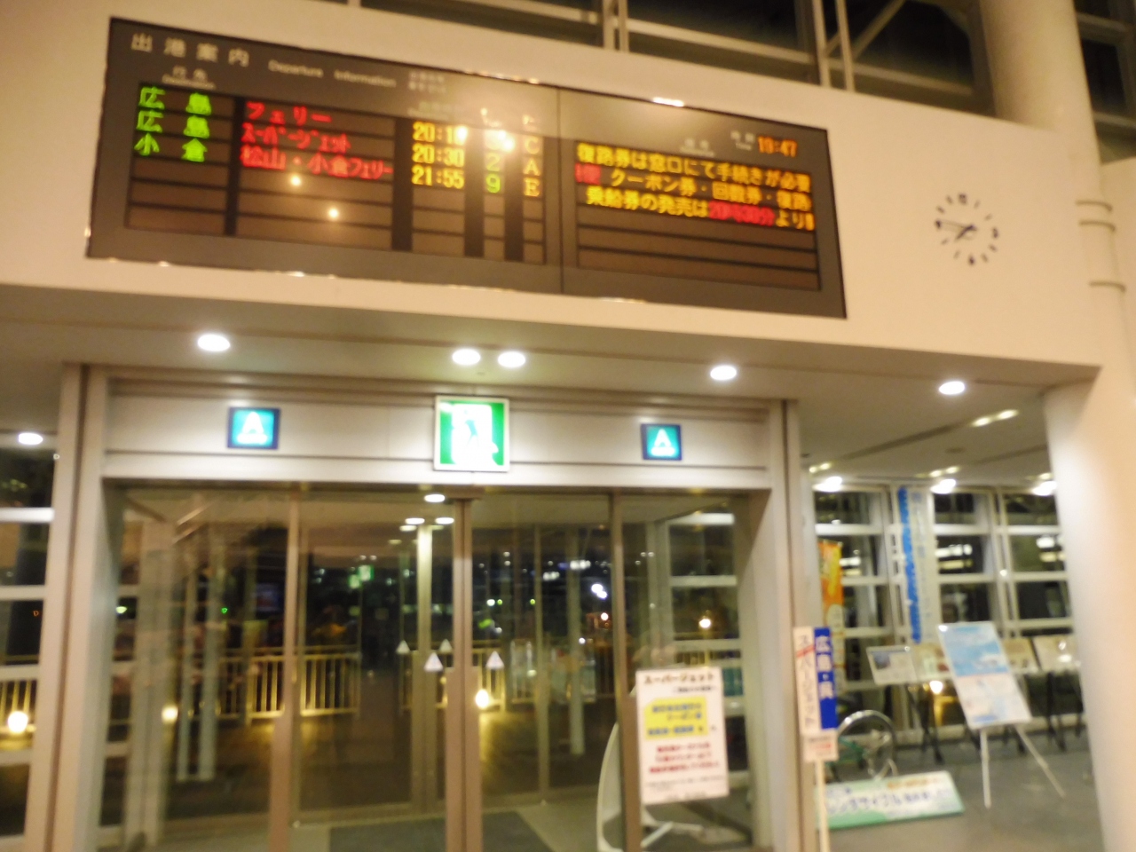 松山の海の玄関口松山港観光ターミナル内は発着便数も多く利用した小倉からのISHIZAKIフェリーはボーディングブリッジ利用で下船・乗船しました。