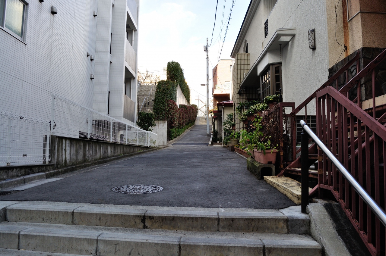 立爪坂は湯島にある妻恋神社の近くにある坂道です。妻恋神社の目の前を通る妻恋坂の途中に北向き(湯島天神の方向)に延びる階段と50メートルほどの坂道がありますが、ここが立爪坂となります。私が訪問した時点では、坂道の由来などを記した説明板や石柱のようなものは無く、事前にここが立爪坂と調べてからいかないと、ここが立爪坂なのかはまずわからないと思います。名前の由来などもわかりませんし、観光地としてはちょっと弱いですね。