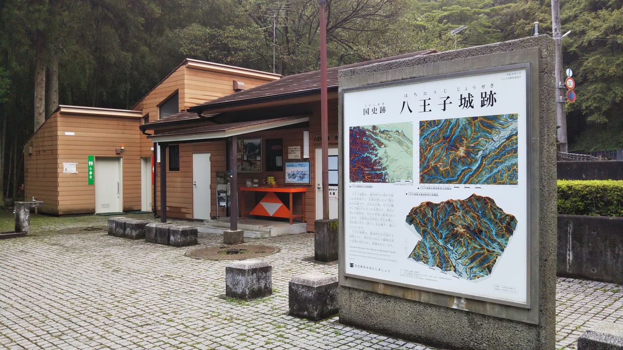 日本百名城巡りの一環として初めて行きました。八王子城跡の標識を曲がるとほぼまっすぐ道が続き、奥に山城はありました。夕立のような雨が降ったので、少し霧がかかっていて幻想的な雰囲気が漂っていました。スタンプは管理事務所の入口に置いてありました。