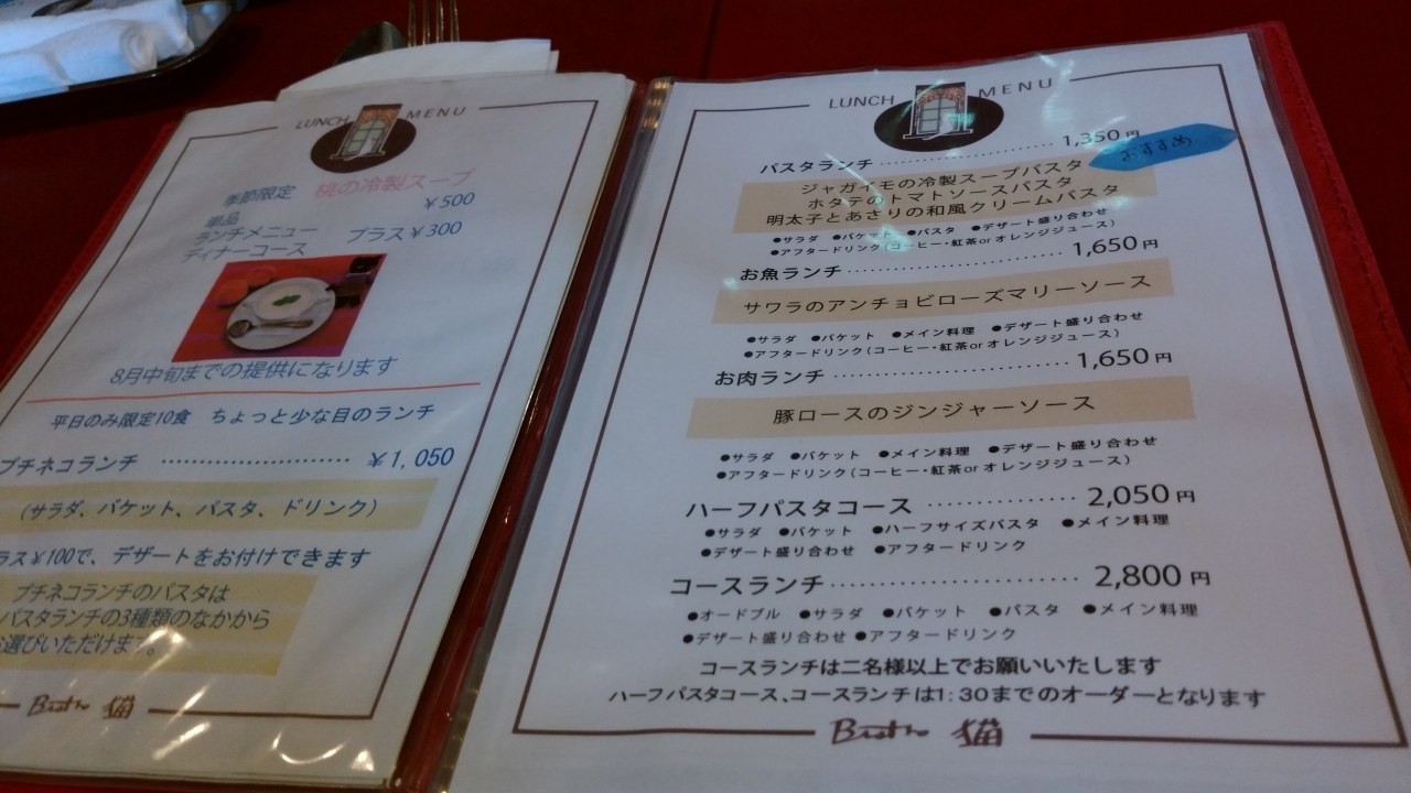 毎年会っている友人グループのランチで訪れました。 おすすめの「パスタランチ」をいただきました。 サラダ、パスタ、デザート、ドリンクまでついて1350円。 とても美味しかったです。 「猫」というだけあって、ちょっとした所に猫さんのオブジェがあったり、デザートに猫型のビスケットが添えてあったりしました。 駐車場は店の奥です。 入り口は狭くで数台かな。