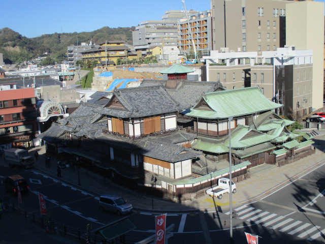 道後温泉の後ろから登り口があります。さほどの坂ではなく、誰でも登れる程度です。この日は工事をしていたのですが、道後温泉本館のビューポイントには入れました。ここからは、道後温泉本館の全景が綺麗に見えます。うっとりするほど本館は美しいです。
