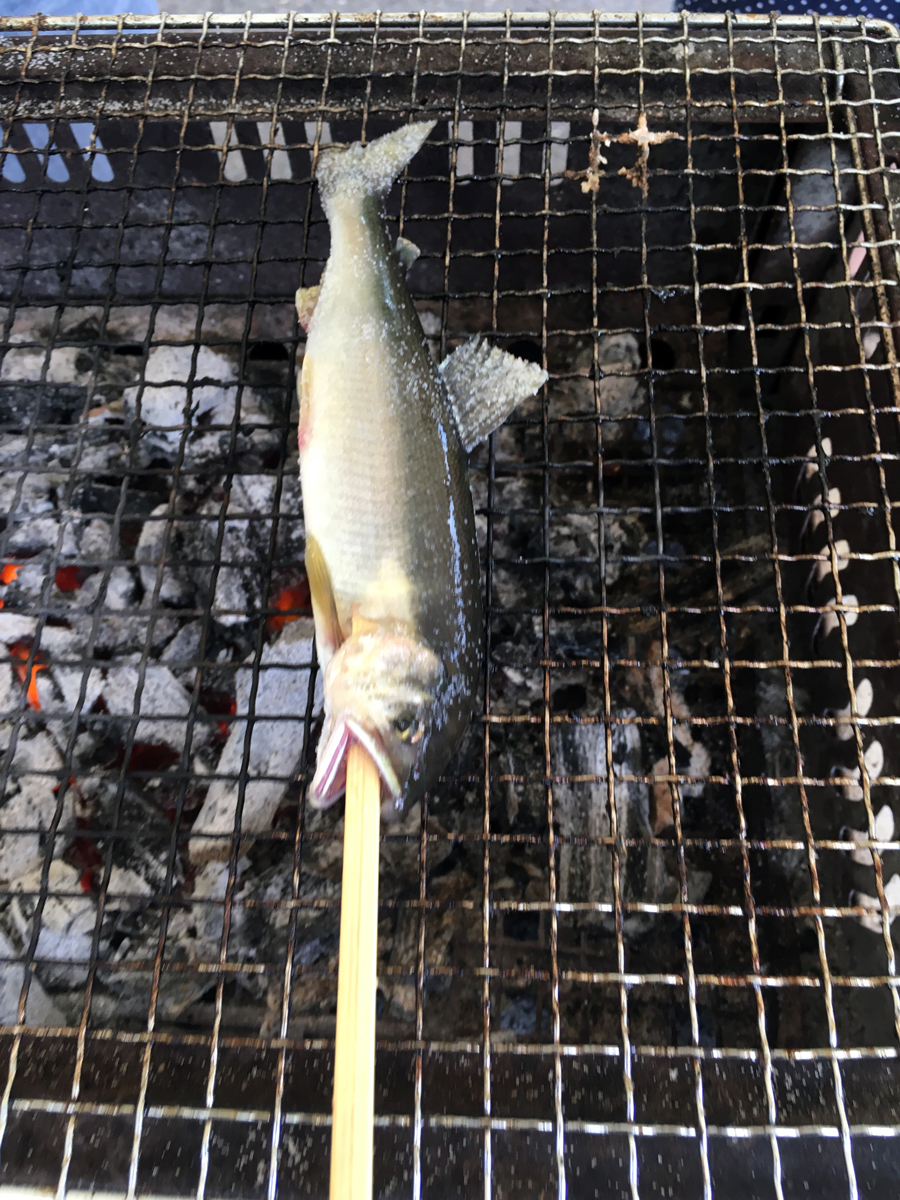 兵庫県養父市にある公園。目の前を川が流れている綺麗な公園です。公園内ではあゆなどの魚のつかみ取り体験ができ、取った魚は塩焼きにして食べることができます。日によって魚の種類は違うようですが、訪問時はあゆでした。バケツにいきた鮎をもらい、区切られたスペースに放して、つかみ取りというスタイルですが、子ども連れにはいいかもしれません。体験後の塩焼きもおいしくいただきました。