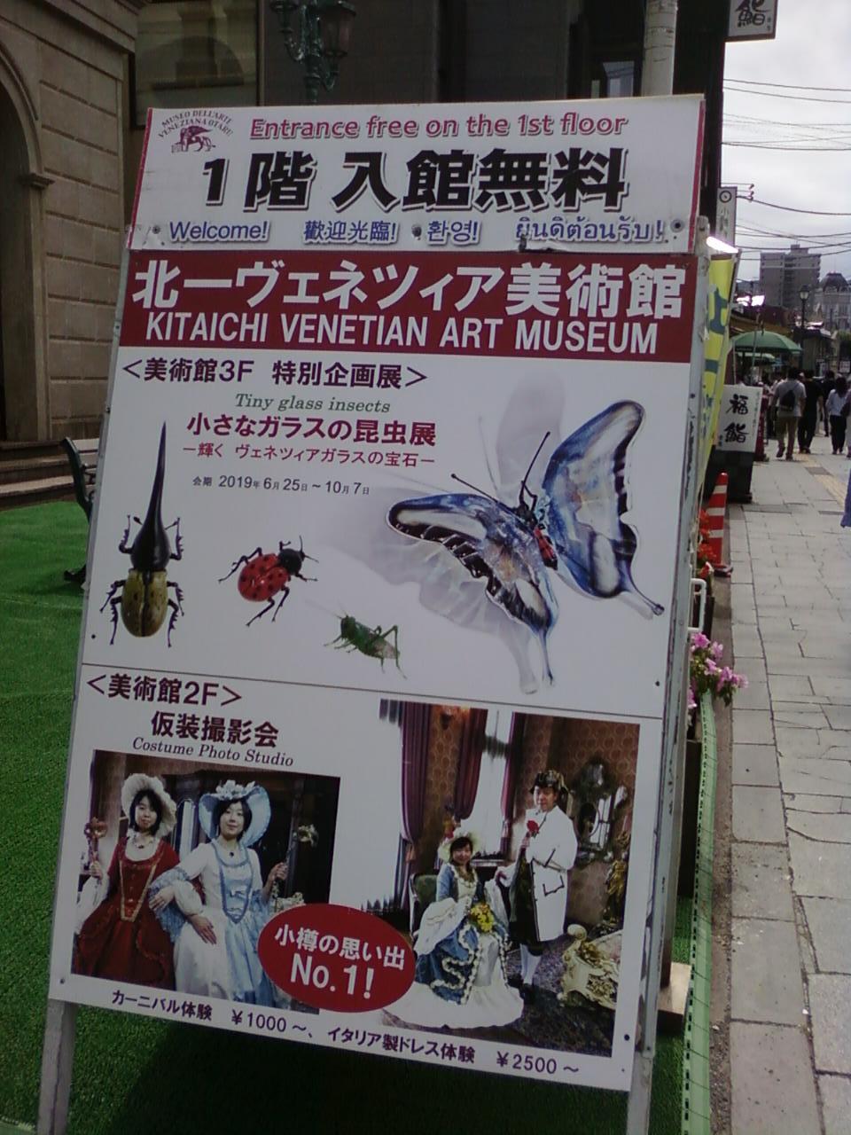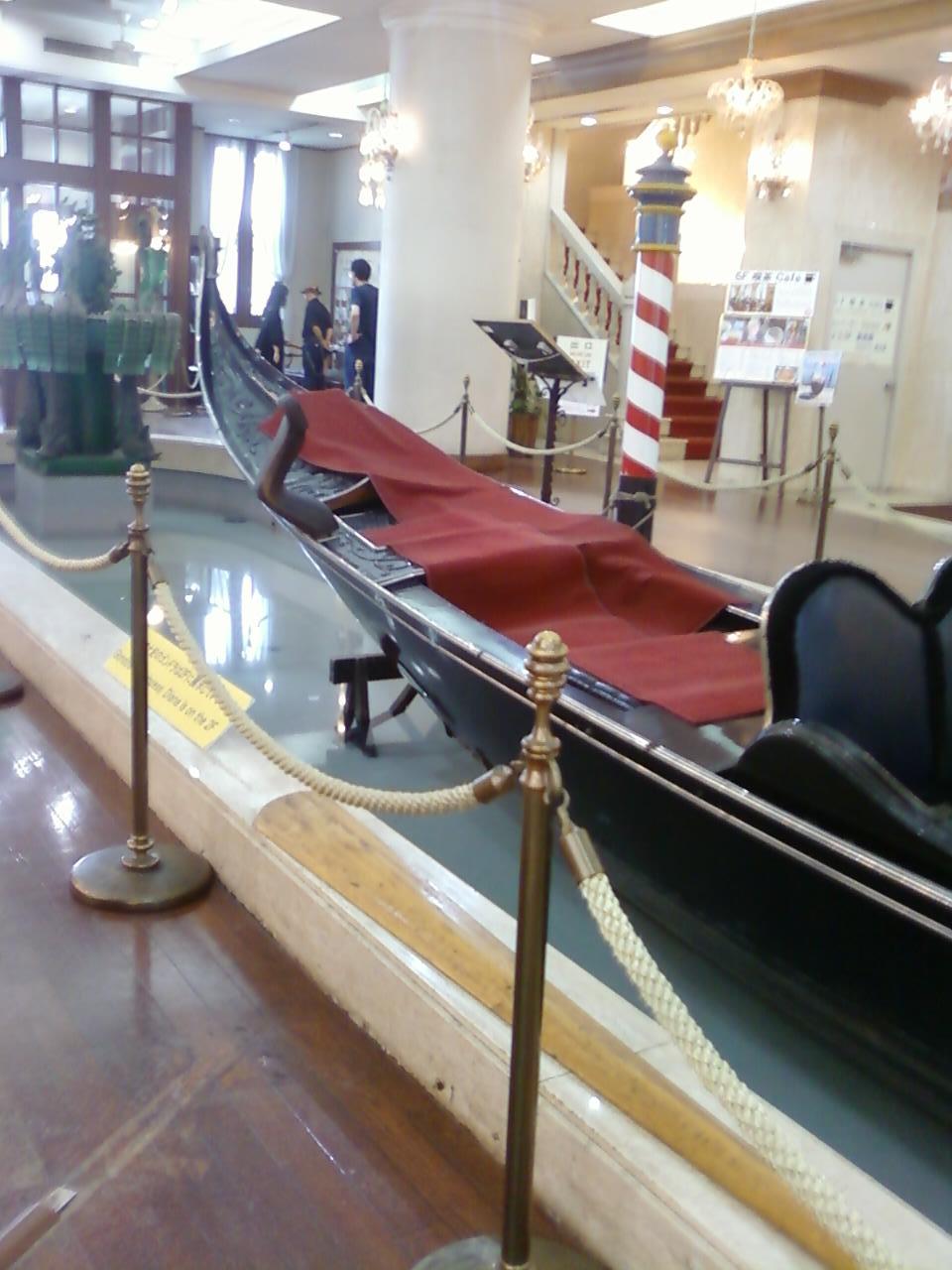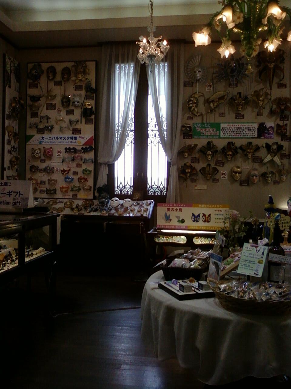 北一ヴェネツィア美術館は、小樽一番のメインストリート、界町本通りにあります。北一硝子が経営する美術館で、周囲にはルタオや六花亭などの華々しい手たものがありますが、それに全く劣らない立派な建物です。ヴェネチアングラスやカーニヴァルの仮面なども一階で展示販売しています。何よりも驚くのは、エントランスに大きなゴンドラが入っていて、まさにヴェネチアムード満載の美術館兼お店です。