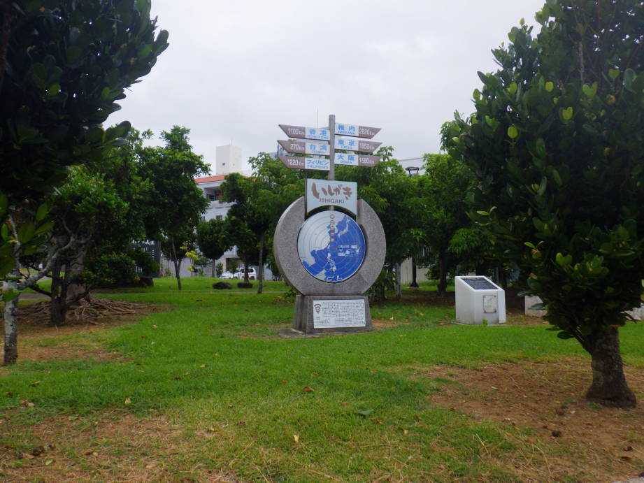 東横インから歩いてすぐのところに新栄公園はありました。芝生の広い公園で、石垣島のお祭りもここで行われるそうです。観光客がとりたててここで見るものはありませんが、石垣島からだと台湾だけではなく、フィリピンや香港の方が東京よりも近いことが表示されているのが面白かったです。