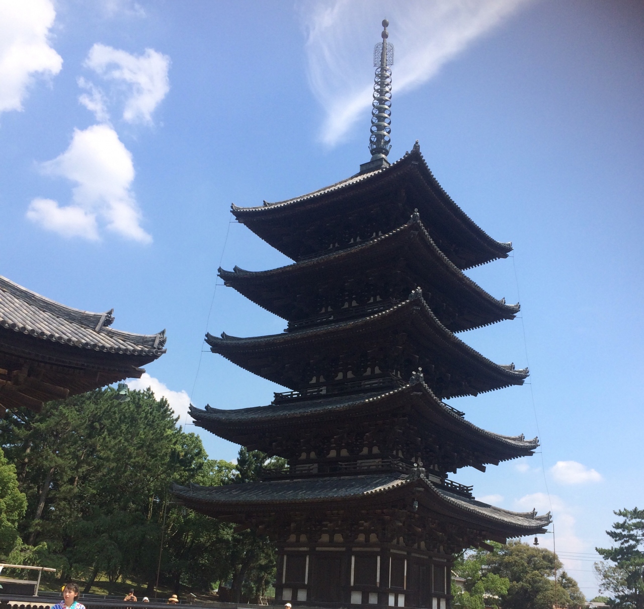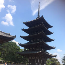 奈良には何回か修学旅行も含めて行っていますが、興福寺は初めて行きました。教科書でしか、見たことがなかったので、とても感激しました。シンボルの五重塔は高台にあるため、遠くからでも見ることができます。とても素敵な雰囲気でした。