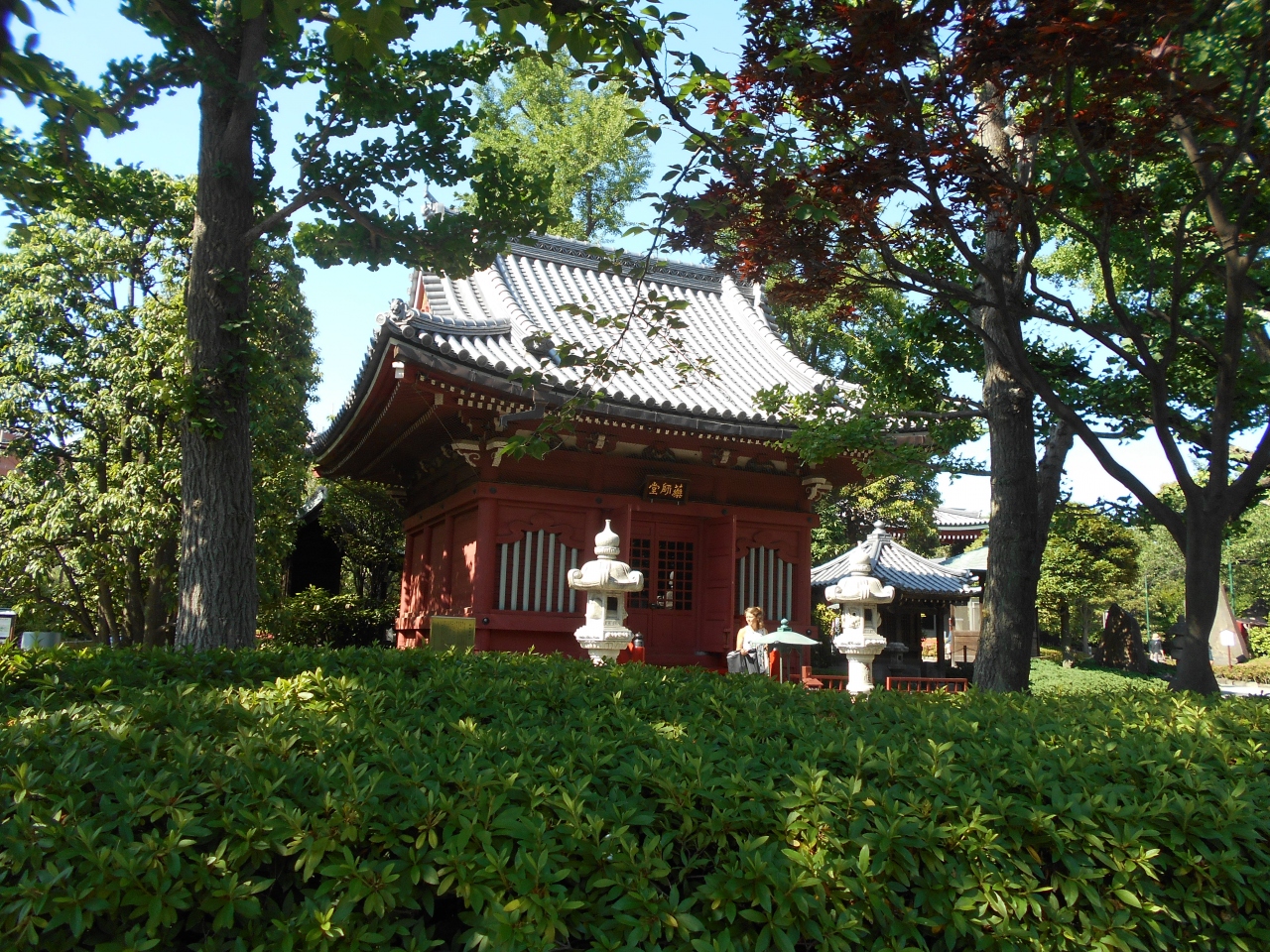 浅草寺本堂の西側、緑が濃い影向堂の南に建つ、三間四方の小さな堂宇。
