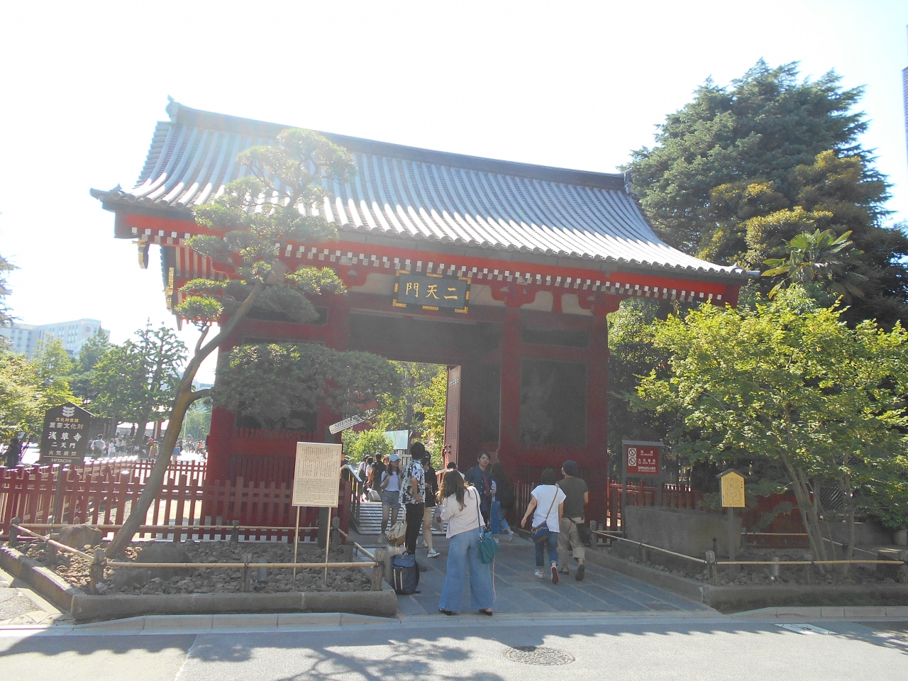 浅草寺本堂の東側、隅田川からの東参道にあたる二天門通りに、東向きに建つ切妻造の八脚門が「二天門」。