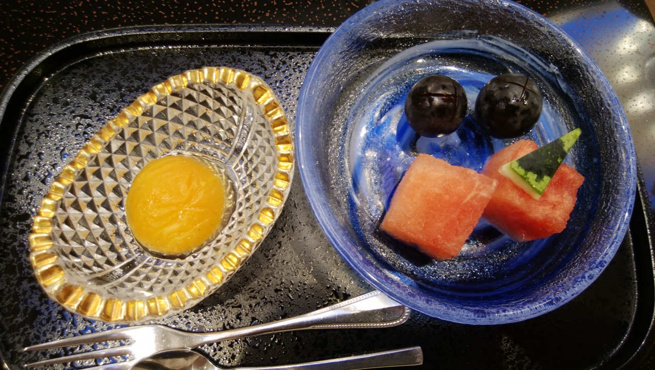 冷房が効きすぎたり切ると暑かったりする古い建物です。お料理は基礎のできたお品で映え狙いは無いですが絵心華やぎはあります。お味もよい和食軸の洋中折衷でした。いただけば、技の妙と食材の良さが、それとわかります。